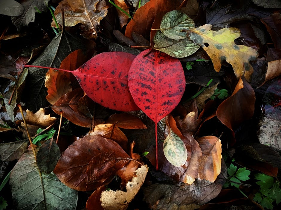 Ralph writes: ‘These leaves came to rest on the ground just like this, no intervention on my part. I really like the arrangement.’