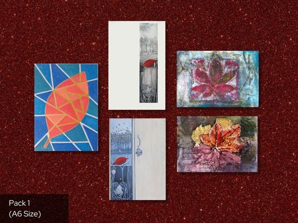 Since so many of you have asked, greetings cards featuring images from the Red Leaf Creative Collaborative are now available to purchase. Each card is a symbol of connection, creativity and care. Cards are blank inside (so not just for Christmas!) We are hoping to make more designs available from the wider exhibition in the near future.