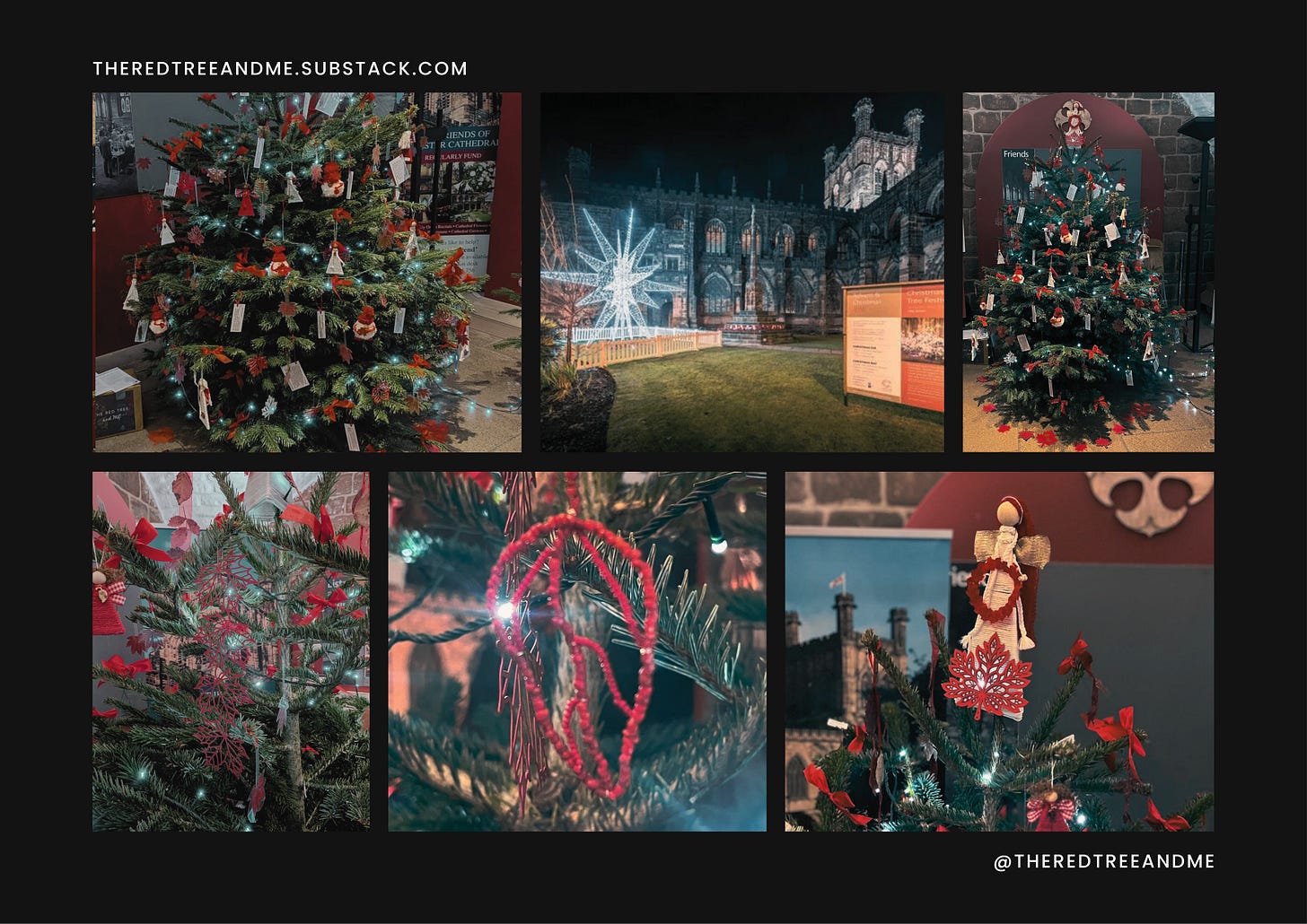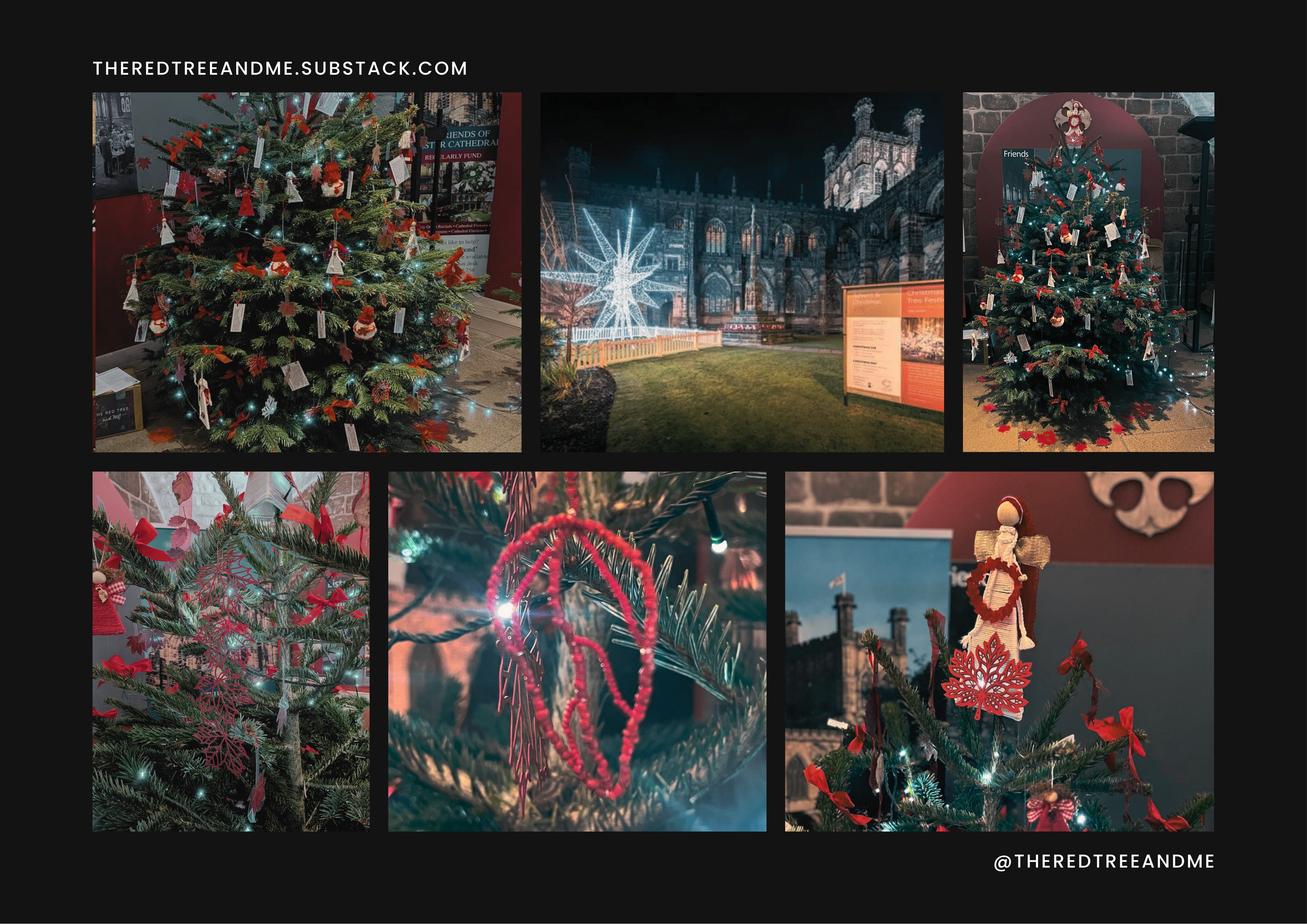 Every year, Chester Cathedral transforms into a twinkling wonderland for its Christmas Tree Festival. With more than 80 beautifully decorated trees lining the historic cloisters, the festival has become a much-loved tradition for families, visitors, and community groups. The theme for this year is “Christmas around the World”. We are really excited to share that, among the many sparkling displays, is a very special installation from The Red Tree and ME, complete with messages of hope from around the world.