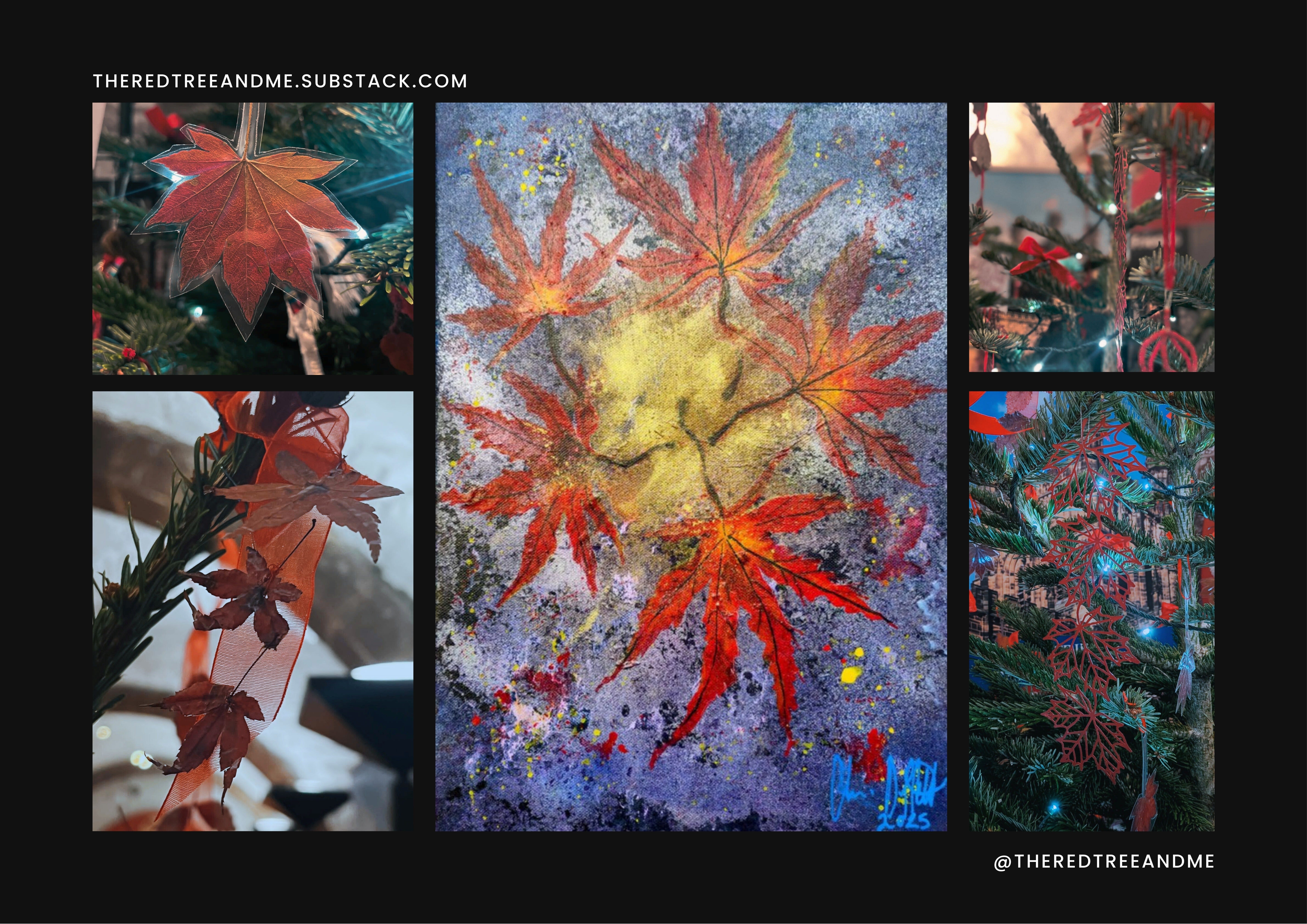 Special thanks to Amina Hussain for her vision and for very kindly sponsoring the tree. Many thanks also to Amina and to Clare Rayner for decorating the tree so beautifully. Thanks also to the artists for creating such beautiful ‘red leaf’ pieces at very short notice: Jo Baxter, Caroline Fricker, Helen Guy-Roberts, Germaine Hypher, Shirley Kay Mosaics and Louise Kenward. We are also very grateful to Rachael at Kingdom Print for such a quick turnaround on the information cards and, of course, to the team at Chester Cathedral for hosting the Christmas Tree Festival, which is open until Sunday 4 January 2026.